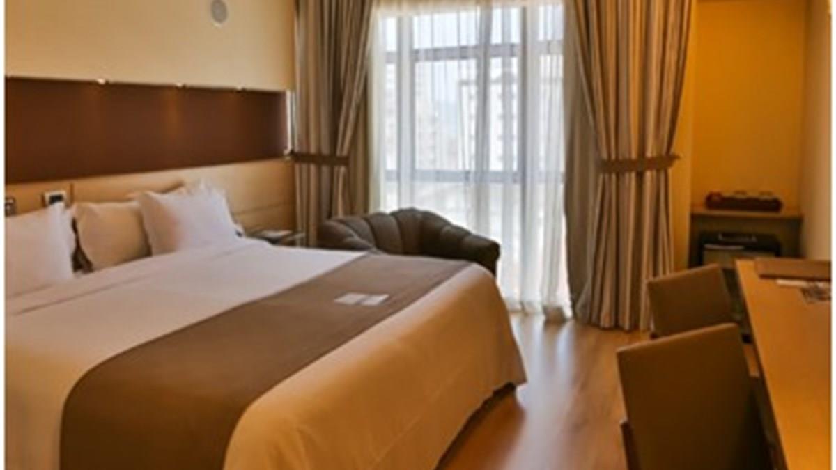 O hotel possui mais de 3,7 mil metros quadrados de área e 240 apartamentos distribuídos em duas torres de seis e nove andares.