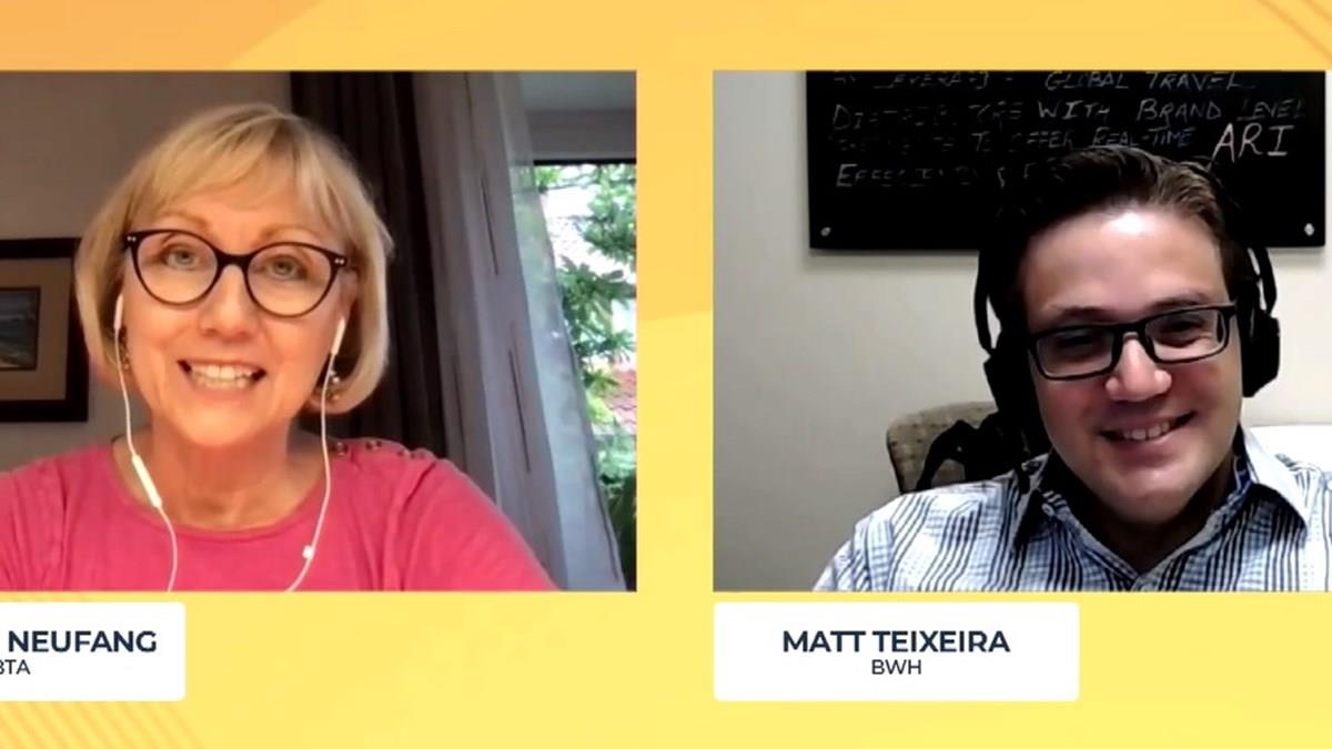 Suzanne Neufang, da GBTA, conversou com Matt Teixeira, do BWH Hotel Group, no segundo painel