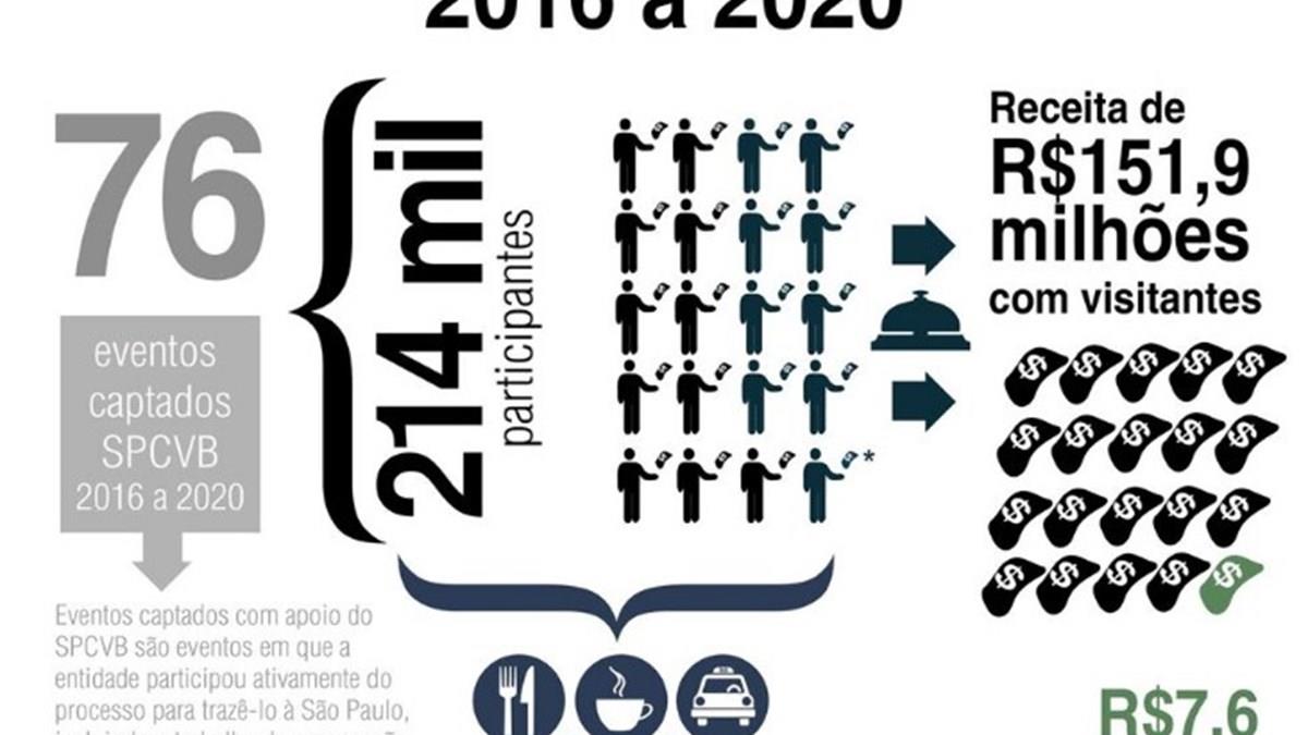 Em levantamento sobre os eventos realizados em 2016 somados aos confirmados até 2020, o São Paulo Convention & Visitors Bureau (SPCVB) espera que a capital financeira do País tenha uma movimentação de mais de R$ 150 milhões em eventos, e fluxo de 214 mil participantes atraídos pelos próximos três anos.