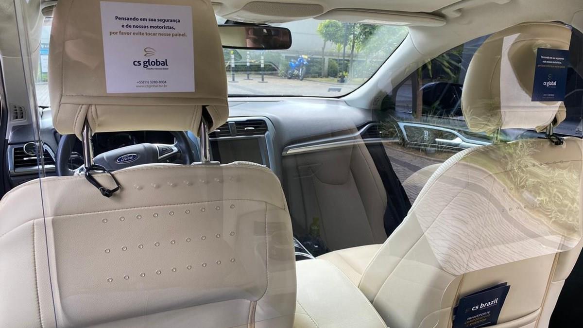 A CS Global equipou todos os veículos com placas de acrílico para contribuir com o controle da covid-19.