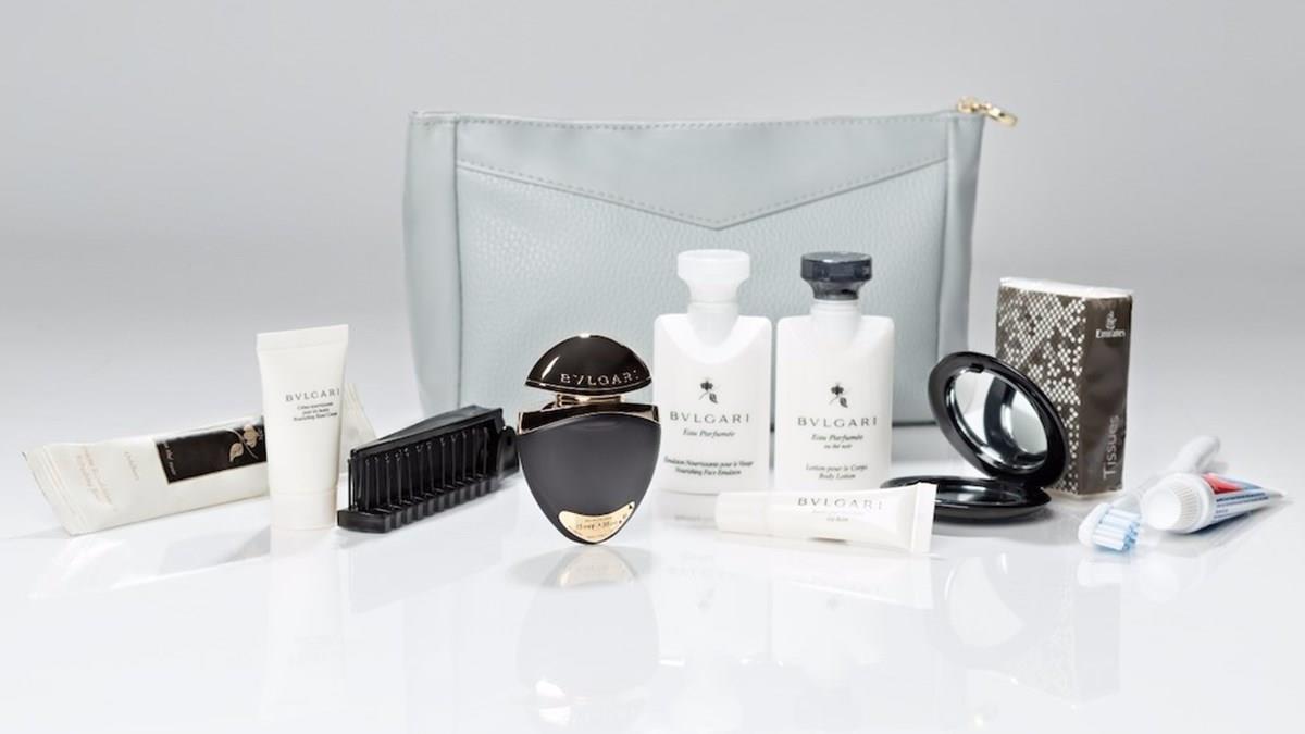 Além das roupas, os passageiros da primeira classe ganham um kit de amenidades de fragrância floral da Bulgari Eau Parfumée au thé noir, que também estão disponíveis aos passageiros de classe executiva. Os kits da primeira classe, feitos de couro fino, vêm em oito desenhos em cinza para os homens e bege para as mulheres. Oito projetos adicionais estão disponíveis na executiva - quatro para homens e quatro para mulheres.