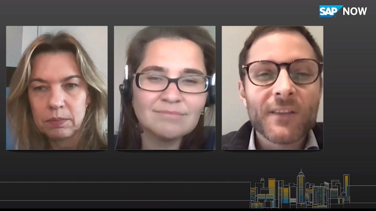 Valeria Soska, da SAP Concur, Fernanca Saraiva, da SAP Brasil, e João Araújo, da SAP Qualtrics, falam sobre experiência do colaborador