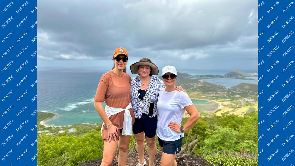 Hospedadas em um dos belos hotéis do destino, o Soho Beach House, o roteiro deste sábado (24) começou com uma trilha ao Mount Royal, o ponto mais alto de Canouan, com cerca de 300 metros de altitude. De lá, é possível avistar toda a ilha, o mar do Caribe em diferentes tons de azul e algumas ilhas vizinhas das Granadinas, como Mayreau e Union Island.